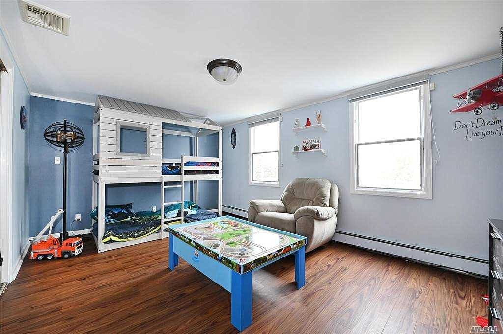 Beautifully Renovated 2500 sqft (approxi.) Mid-Block Colonial in Herricks School District. Entry hall, massive living/family room with wood buring fireplace and granite surround, Huge Formal Dining room, kitchen with granite counter tops, stainless steel applicances, gas cooking, sub zero fridge and microwave hood in addition to large breakfast area with beautiful sliding doors leading to expansive deck. Primary/master bedroom main floor and powder room. 2nd floor master en suite with walk in closet, full bath and storage area, 2 additional family Bedrooms, Full Bath, CAC 2 zone and 3 zone heat, whole house water filtration system, basement is recently renovated with laundry area and utilities room.Backyard has large Deck, playground, shed, fully fenced and flat property. A Must See! Move in Ready!
