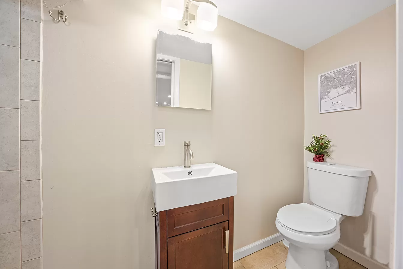 Renovated ground floor space features open living room and full bathroom, washer/dryer hookups in closet, plus front and rear OSE with access to private backyard.